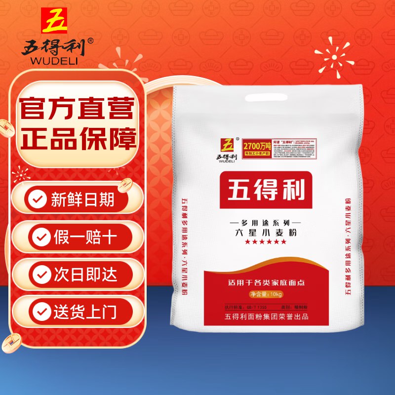 五得利面粉 多用途系列六星小麦粉20斤