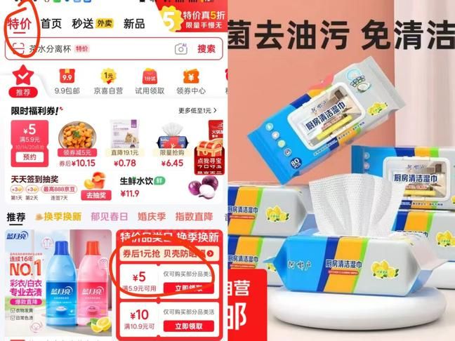 🚦 京东-特价频道如图领5.9-5券